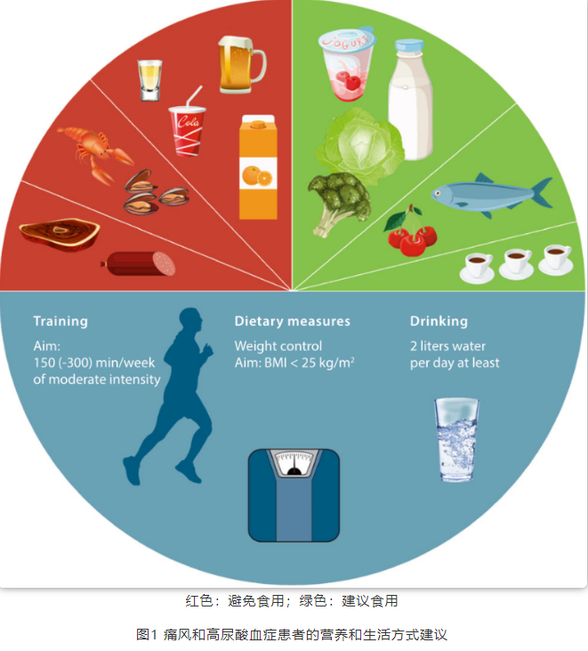 - 痛風患者應在滿足每天必需營養需要的基礎上,通過改善膳食結構和增加規律運動,實現能量攝入小于能量消耗,同時避免過度節食和減重速度過快,以每周減低0.5kg - 1.0kg為宜,最終將體重控制在健康范圍。